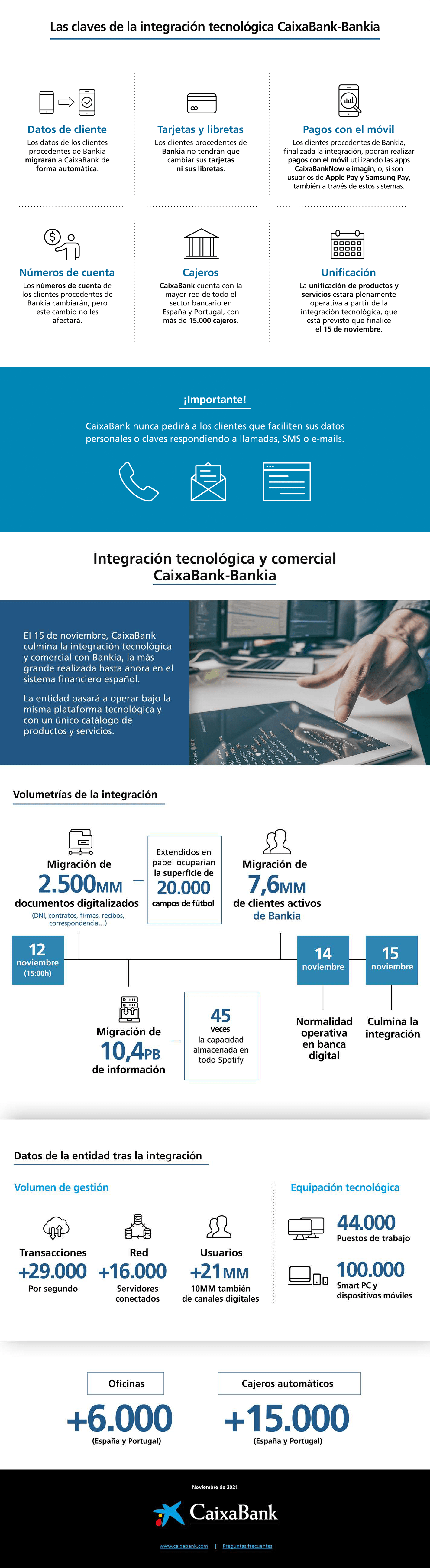 CaixaBank ha culminado la integración tecnológica y operativa de Bankia, tras asegurarse la normalidad operativa en todos los canales y para todos los clientes, con especial atención a aquellos usuarios procedentes de Bankia que, tras la integración, pasan a operar a través de la banca digital de CaixaBank. Conoce aquí las claves.